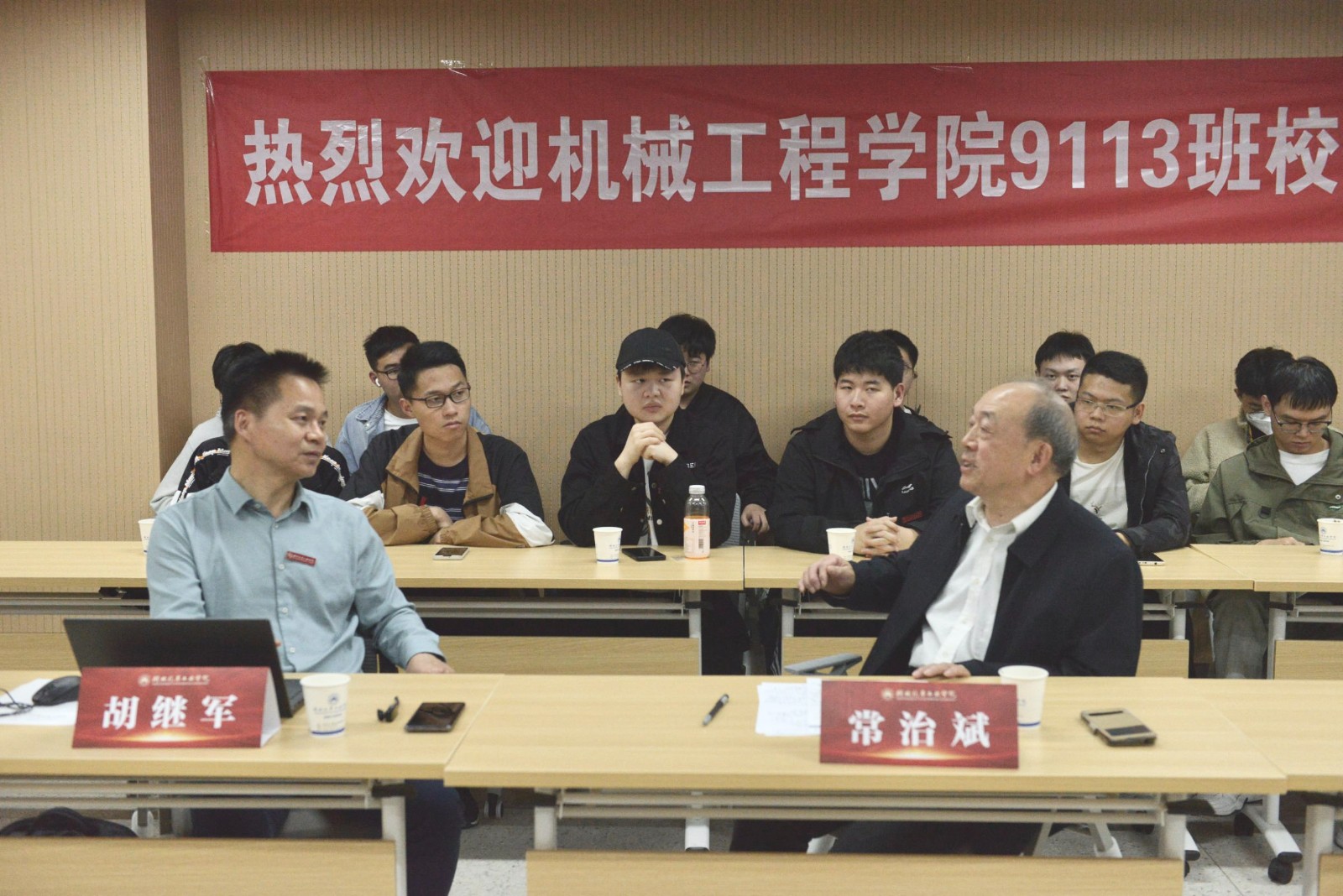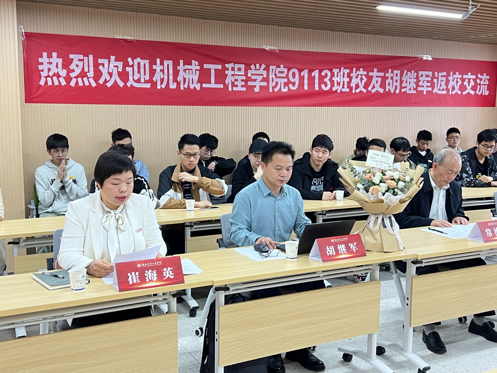 5月9日,风和日丽,风景如画。威廉体育williamhill9113班员工胡继军返校交流大会在产教大楼二楼ZX-203报告厅举行。威廉体育williamhill分党委书记崔海英、威廉体育williamhill原机械工程系主任常治斌教授、辅导员及员工代表欢聚一堂,回忆青葱岁月,共襄公司发展。